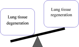To maintain a healthy lung structure, the lungs have the ability to remove unhealthy cells and replace them with new healthy cells. The removal process is catalyzed by the proteases including neutrophil elastase, proteinase 3, macrophage elastase and matrix metalloproteinases. To balance the proteolytic activities, inhibitors such as a-1 antitrypsin produced by the liver can inhibit the elastase produced by neutrophil. Lung inflammation and infection from bacteria or influenza virus and reactive oxygen species or toxic chemicals such as nicotine from smoking can trigger TNF and chemokines including IL-8 which cause infiltration of neutrophil and macrophage to the alveoli and release of high amounts of proteases. Abnormal high proteolytic activity and/or decrease or deficiency of a-1 antitrypsin results in lung tissue damage and loss of elasticity.